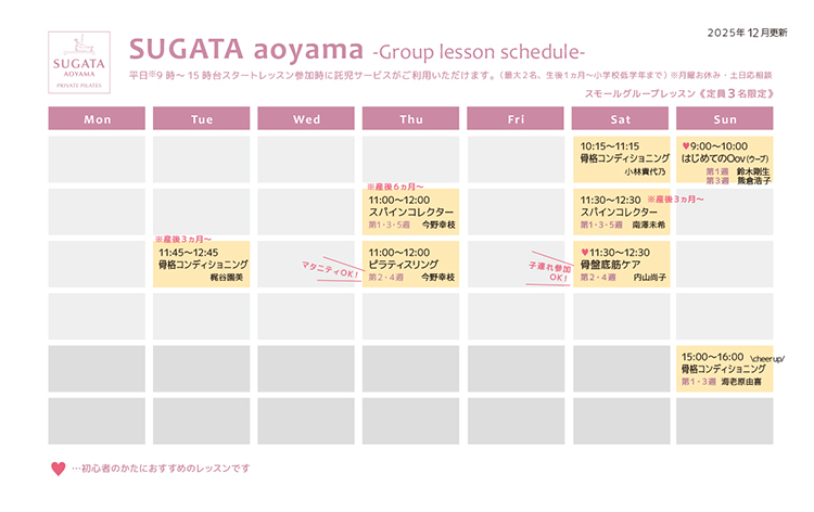 プライベート⇒産後1か月以降、グループ⇒産後2か月以降から。医師より外出・運動許可のある方を対象