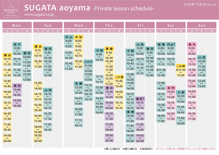 ※スケジュールの時間割以外でも、レッスン予約のご対応が可能な場合もございます。ご相談ください。